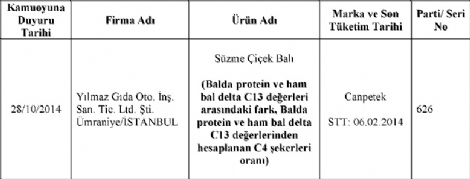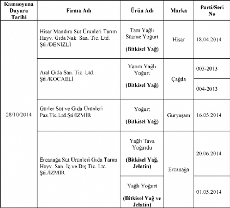 Taklit ve tağşiş yaptığı belirlenen işletmeler ve ürünlerinin parti numaraları Bakanlığın internet sitesinde açıklandı.