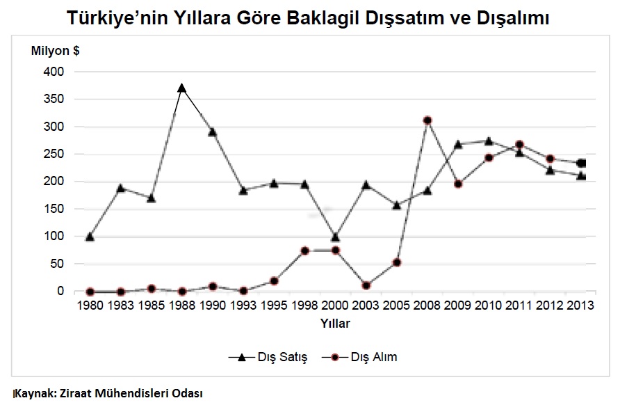 2000 yılında 78 milyon $’a ulaşan baklagil dışalımı, 2003’e kadar azalma göstererek 14 milyon $’a kadar geriledi ama daha sonraki yıllarda sürekli artış gösterdi.