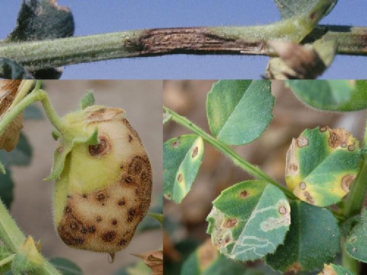 Hastalık nohut bitkilerinin sap, yaprak ve tohum kapsüllerinde lekeler halinde kendini gösterir. Sap ve dalları çepeçevre saran, düzensiz irilikte ve açık kahveden siyahımsı koyu kahverengine kadar değişen lekelerin bulunduğu yerlerden kırılma ve kısa zamanda kurumalar görülür. Yapraklardaki dairesel şekilli lekeler sarı renkli bir hale ile çevrilidir. Tohum kapsülleri üzerinde iç içe dairesel lekeler meydana gelir. Bu lekelerin yüzeyinde toplu iğne başı iriliğinde siyah renkte piknitler görülür.