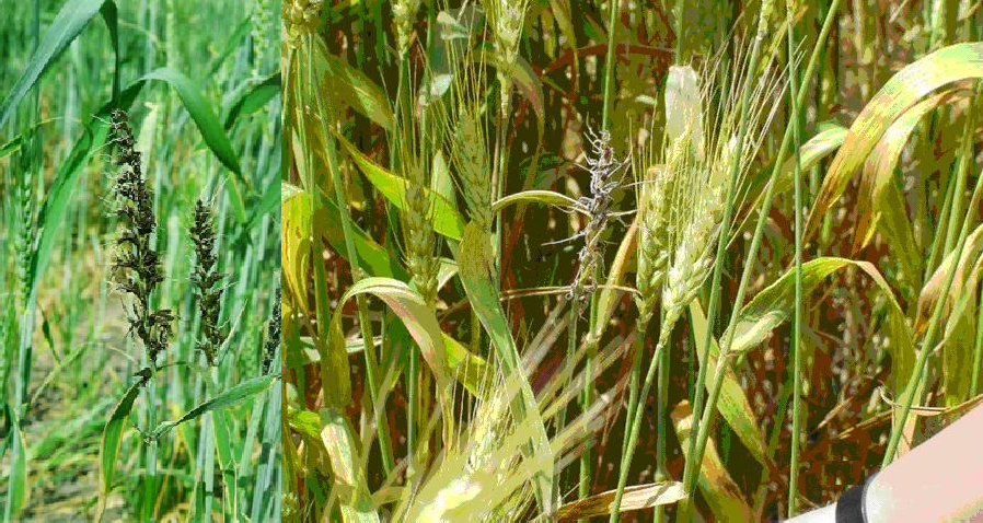 Buğday rastığı ve Arpa açık rastığı: Çiçeklenme devresinde rastık hastalığına yakalanmış başaklar siyahlaşmış görünümleri ile sağlamlarından kolayca ayırt edilebilir. Sporların çevreye dağılması ile geride sadece başak ekseni kalır.