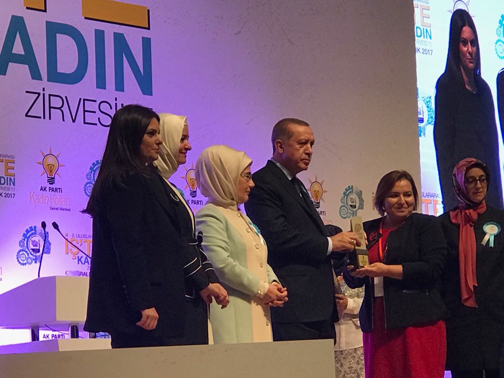 İş'te Kadın Zirvesi kapsamında farklı meslek gruplarındaki kadınlardan oluşan davetlilerin arasında ödül verilecek 10 iş kadınından biri olan TABİT Kurucu Ortağı Tülin Akın ödülünü, Cumhurbaşkanı Recep Tayyip Erdoğan'ın elinden aldı.