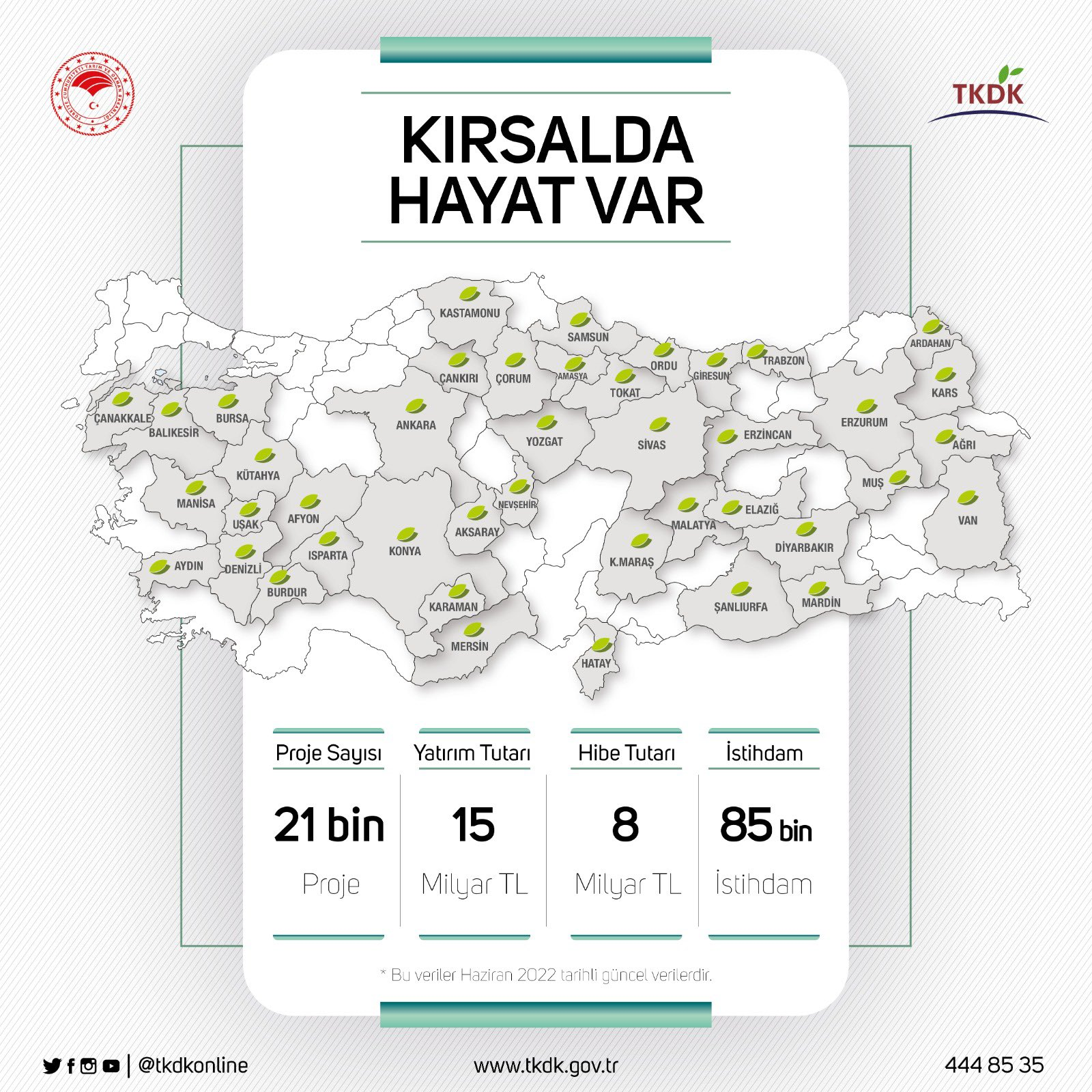 Kirişçi; "IPARD programı kapsamında TKDK tarafından yürütülen kırsaldaki 21 bin projeye yapılan toplam yatırım tutarı 15 milyar TL'ye ulaştı. Üreticilerimize sağlanan hibe tutarı 8 milyar TL'yi buldu. 85 bin vatandaşımıza istihdam oluşturuldu. Hayırlı olsun." dedi.