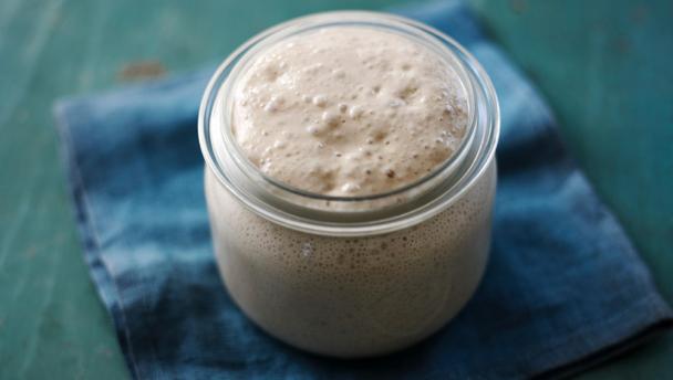 Birinci gün, cam kavanoza yarım bardak un ve yarım bardak şişe suyunu koyup tahta bir kaşıkla iyice karıştırın. Fermantasyonu hızlandırması için kuru üzümleri ekleyin. Kavanozun ağzını kapatıp mutfağınızın ılık bir köşesinde beklemeye bırakın. 12 saat sonra çeyrek bardak un ile çeyrek bardak su ilâve ederek mayanızı tekrar karıştırın. Kavanozun ağzını kapatıp tekrar beklemeye bırakın.